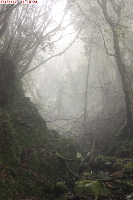 吃完午餐,直行林道撥芒草而行,後右下走捷徑穿越林道三次再接山徑。捷徑周圍皆是優美的人造林,因為濕潤的環境,綠苔淹漫林間。步行山徑至乾溪溝再沿溪溝而下,沉寂的溪溝薄薄的霧氣,染滿綠石青苔滑。繞過乾瀑岩壁不久,右上離乾溝行腰繞路接雅音山主稜,順主稜而下抵雅音山。拍照畢,原路回。沿途於乾溪溝試找水源,無尋獲。返營,烹晚餐,用溼木升營火,不久霧雨。天晚入睡,夜時雨一陣。午夜,月露銀光披滿帳。