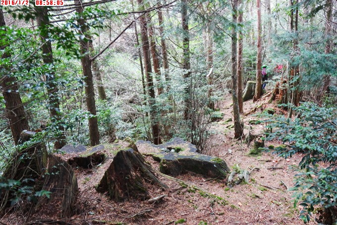 12:23 (00:03) 返08:04 稜線前巨倒木岔路【取直】往東陽山,一路上為杜鵑林鑽來鑽去不好走,亦可見伐木遺跡。