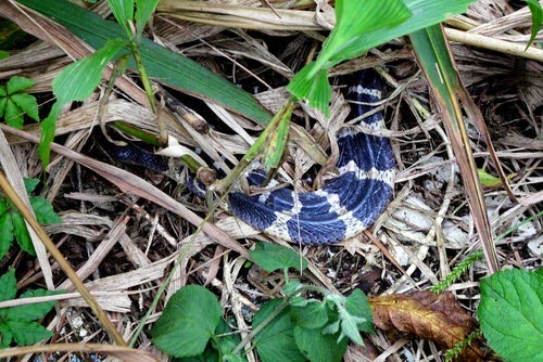↓想不到山頂三角點旁竟然有隻死掉的眼鏡蛇。註:好像沒死在冬眠,因我剛來時有動一下。(謝謝登山補給站的wu1962兄告知是眼鏡蛇,謝謝指教)。