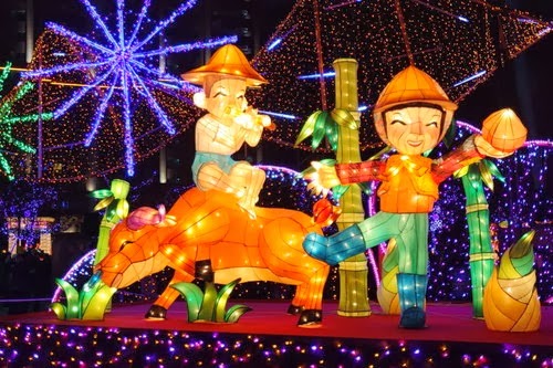 接著再開車前往「東1停車場」坐接駁車前往台灣燈會會。來到會場天色尚早,就四處逛逛走走,也順利找到阿凱兄。之後前往夜市小吃區,買些東西吃坐在路邊吃。後18:10主燈秀看煙火大概八點多離開會場坐接駁車回停車場,回到埔里約11點了。