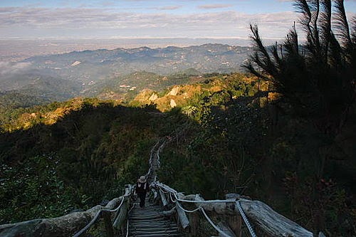 早上四點半起床,梳洗過後,約五點半出發,抵達中正露營區即約六點多,此時天色還略為暗。從中正露營區往頭嵙山乃為四號步道,此四號步道號稱難度最高且最長,但實際走來,大多還可以。頭嵙山步道規劃非常完善,共有八條步道可行。其步道多由原木搭建於崚線上,成為原木棧道,遠遠望去類似萬里長城,而四號步道就是看這小長城的最佳點。