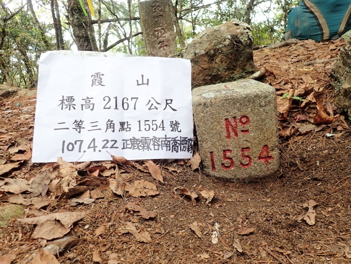 霞山,標高2167公尺,二等三角點1554號、頭前溪水源保謢界31號。