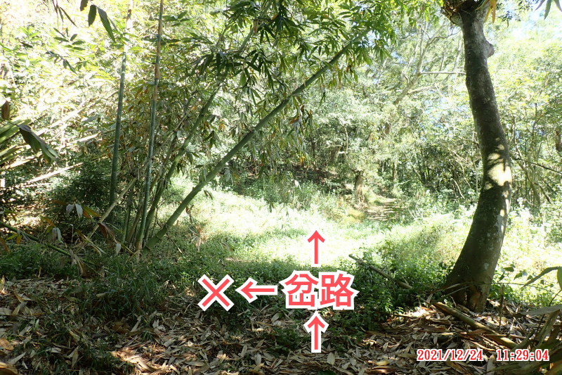 ↓11:26 (00:02) 十字岔路【取直】行。為了要找好走的路浪費約10分鐘。 座標:N23 01 49.7 E120 36 32.1 高度:924 公尺